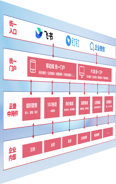对协作平台提供支持服务,,,支持企业应用与协作平台对接,,,包含组织同步、、、消息集成、、、、待办集成等。。。支持目前主流的协作平台:钉钉、、企微和飞书。。。。